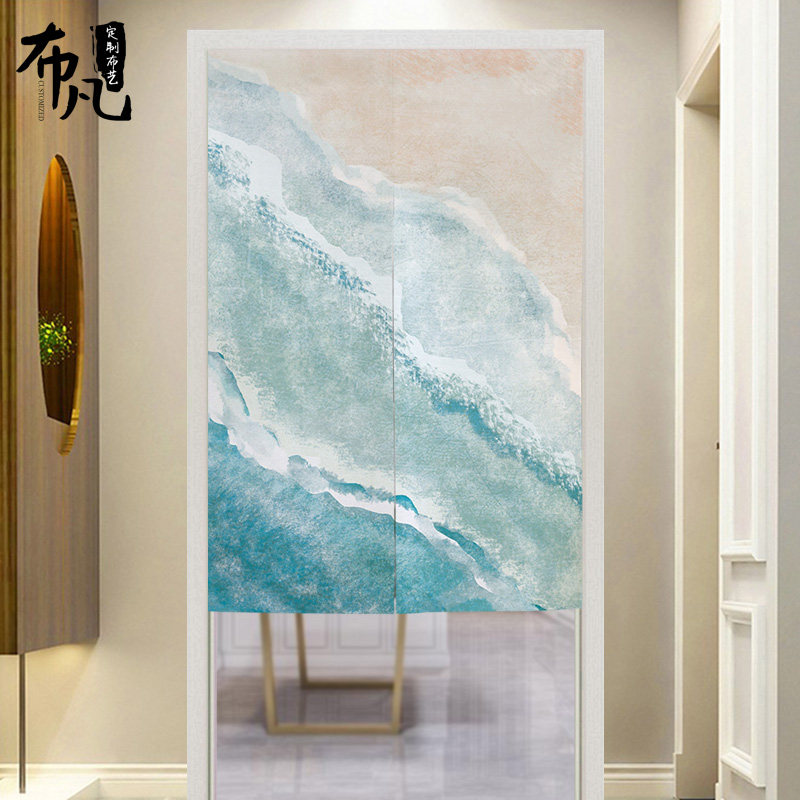 现代抽象艺术风景装饰门帘布艺客厅厨房遮挡帘卫生间魔术贴隔断帘热门设计联盟服务商